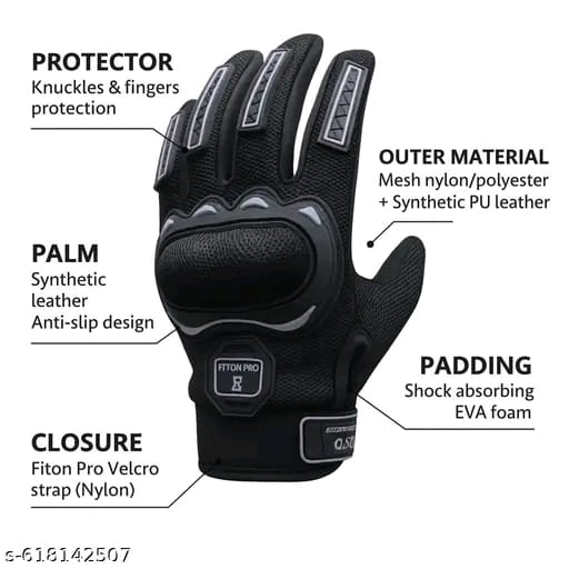 FITON PRO High-quality protective riding gloves designed for bikers who value safety, comfort, and style. These gloves feature a durable, breathable mesh fabric with strong knuckle protection to safeguard your hands during rides It also has a touch cloth to operate the phone.. The flexible design ensures a perfect grip and full control of your bike.